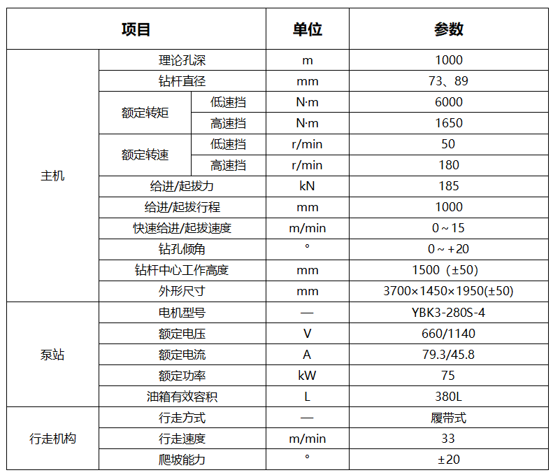 ZYWL-6000D煤礦用履帶式全液壓定向鉆機(jī)參數(shù)表